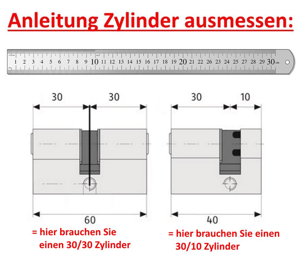 Zur Veranschaulichung haben wir in unseren Produktbildern eine grafische Darstellung, wie Sie den Zylinder messen können.