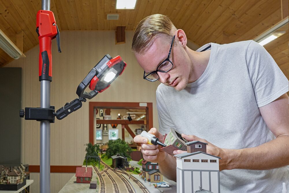 - Werkzeuglos einsetzbar an runden (0-45 mm) sowie eckigen (0-55 mm) Trägerteilen wie z.B. Decken- und Montagestützen, Profilen, Leitern