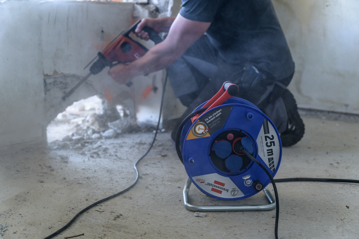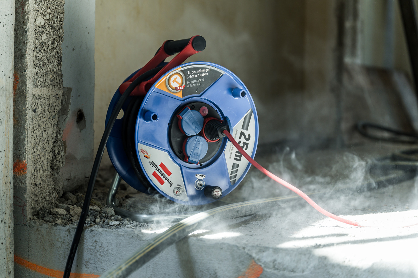 Brennenstuhl Garant IP44 Gewerbe-/Baustellen-Kabeltrommel, 25m aus Spezialkunststoff (Baustelleneinsatz und ständiger Einsatz im Außenbereich, Made in Germany) blau