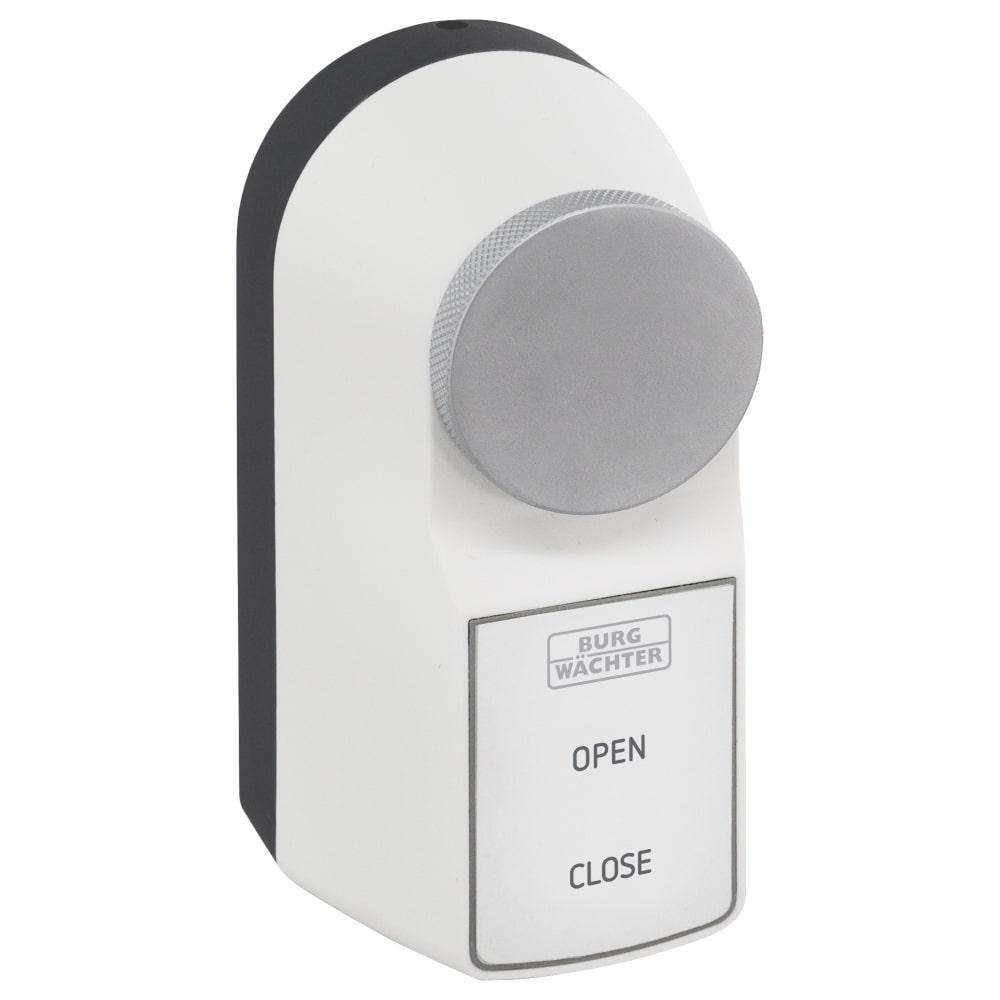 Ein einfacher Tastendruck, und der leistungsstarke Motor übernimmt das Umdrehen des Schlüssels. Alternativ können Sie die Tür mechanisch mit dem Drehknauf öffnen und schließen.