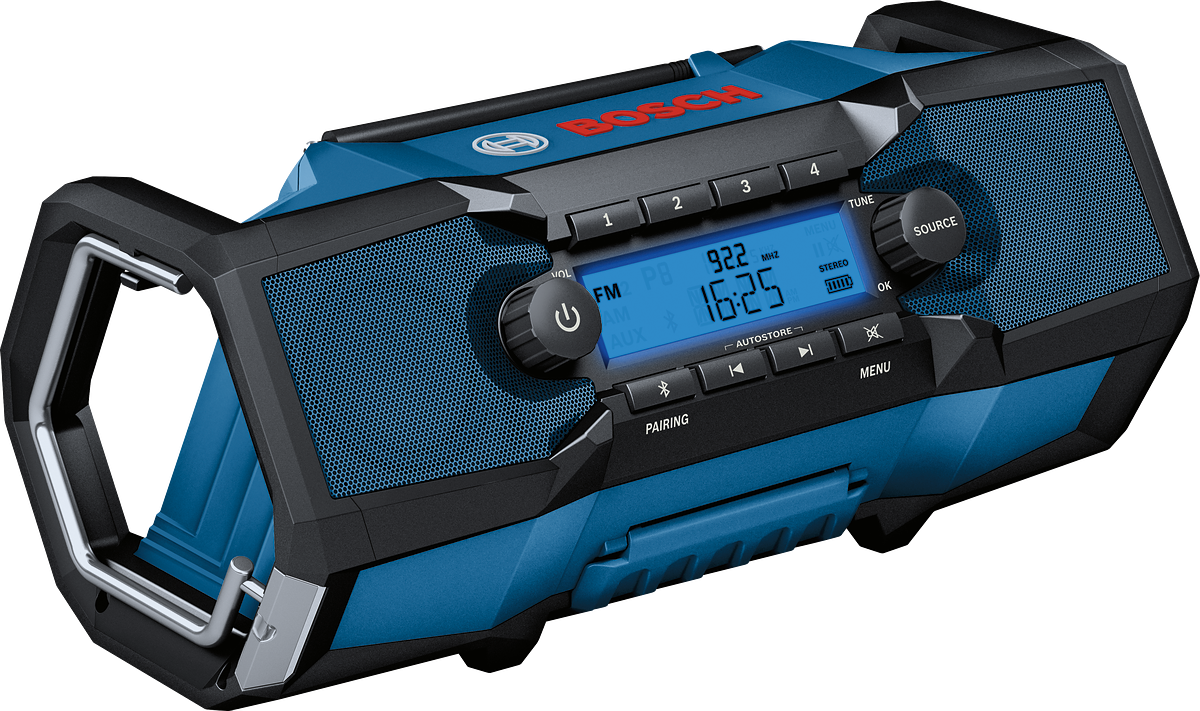 Dieses Radio wurde für digitalen Radioempfang und die Wiedergabe von Musik über Smartphones entwickelt. Das Gerät ist mit Bosch Professional 18V-Akkus kompatibel (1,5 bis 8 Ah).
