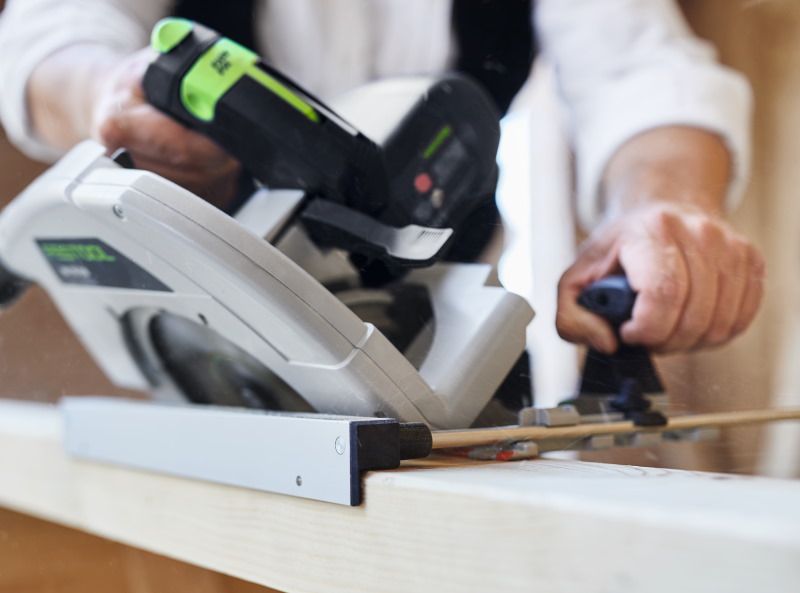 - Sicheres und schnurgerades Sägen auf der Führungsschiene
