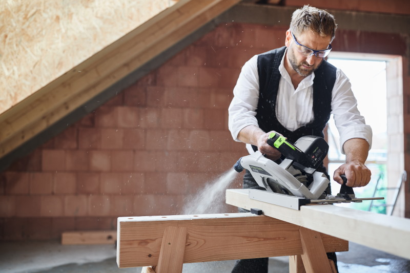 - In Verbindung mit der Kappschiene: schnelle, winkelgenaue und mobile Durchführung von Kappschnitten