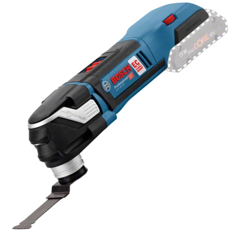 Das Akku-Multifunktionswerkzeug GOP 18V-28 Professional ist der leistungsstarke Akku-Allrounder in der Bosch StarlockPlus-Klasse. Seine einzigartige Starlock-Schnittstelle mit einer optimierten dreidimensionalen Kraftschlussverbindung zwischen Maschine und Zubehör sorgt für eine größtmögliche Kraftübertragung und damit für einen schnelleren Arbeitsfortschritt. Das Multifunktionswerkzeug verfügt außerdem über ein LED-Licht zur Beleuchtung von Arbeitsbereichen und Schaffung optimaler Sichtverhältnisse auch bei Dunkelheit. Darüber hinaus ermöglicht die Snap-In-Funktion einen schnellen und einfachen Werkzeugwechsel.