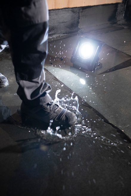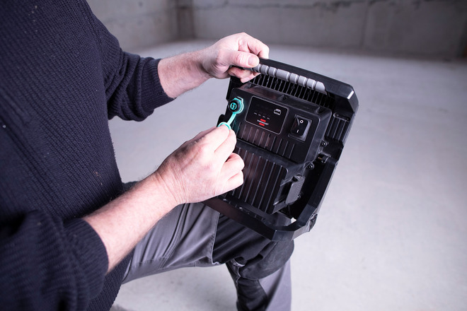 - Robuster Baustellenstrahler mit 4 Schaltstufen (100% - 75% - 50% - 25%) und Schutzsystem für Power-Tool Akkus: Die eingesetzten Akkus sind vor Tiefenentladung und Überhitzung geschützt