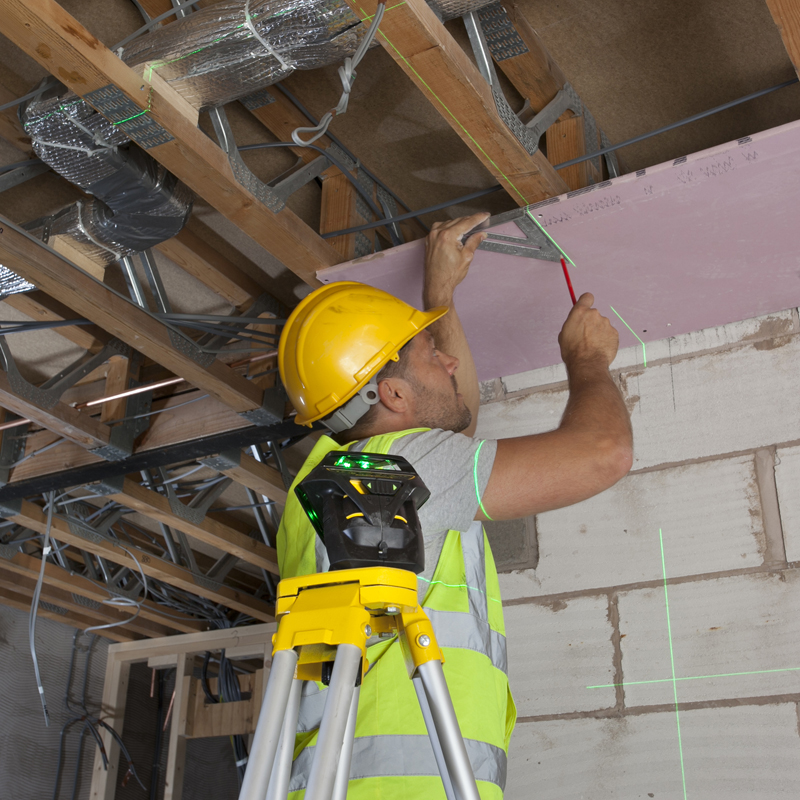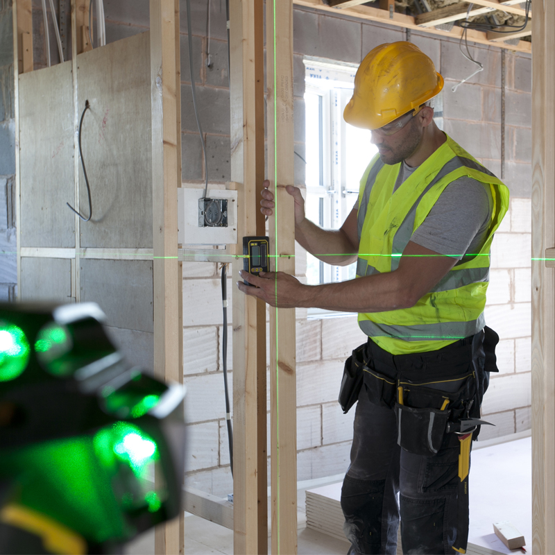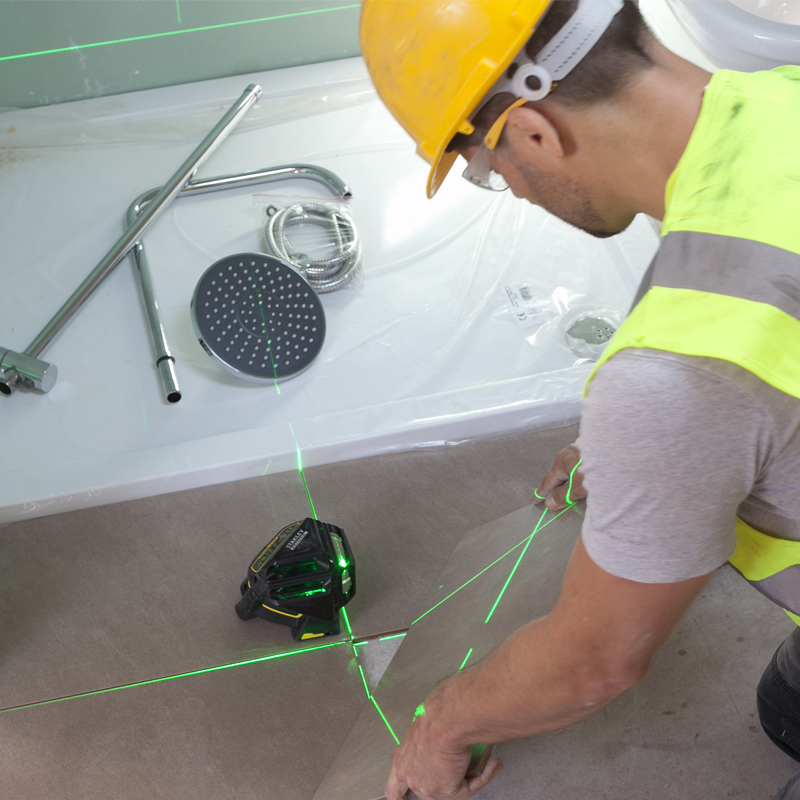 - Projiziert 3 x 360° Linien (1 Horizontale und 2 Vertikale)