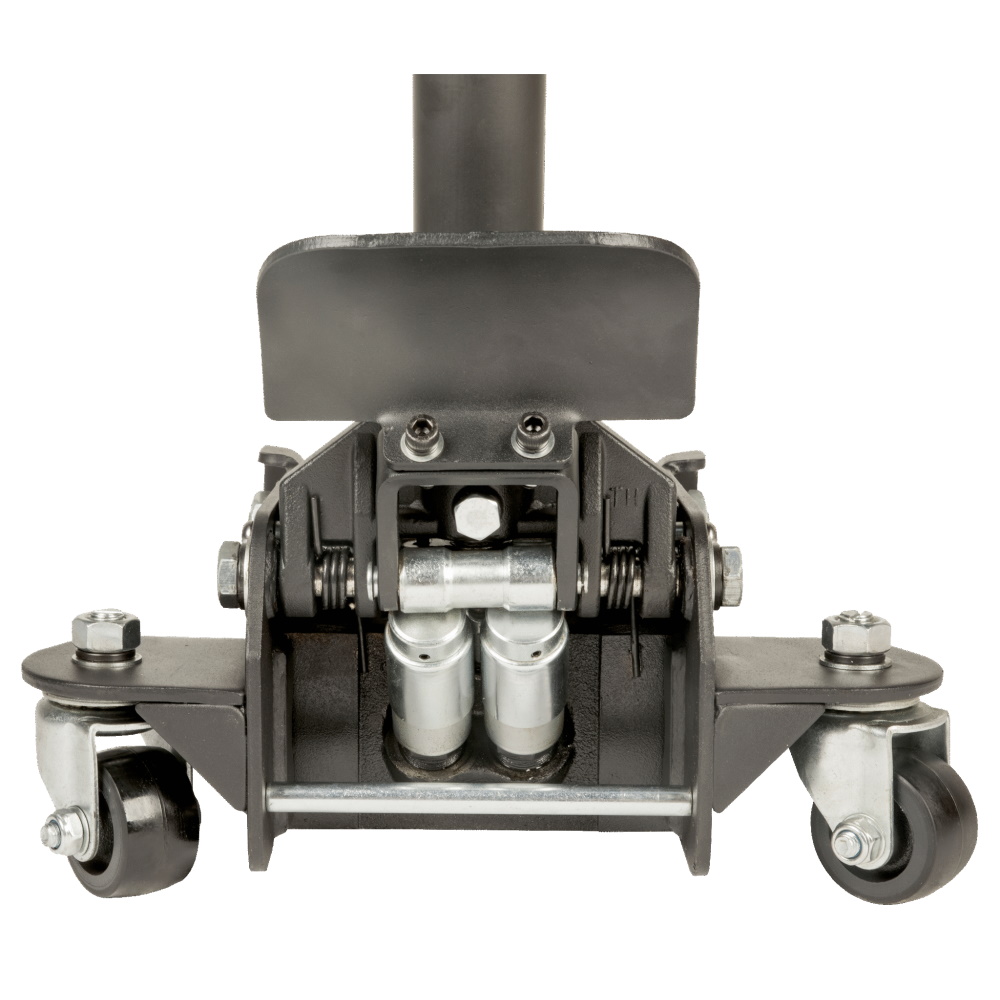 Der Wagenheber mit Doppelkolbensystem hebt Lasten bis zu 50% schneller an als herkömmliche Modelle.