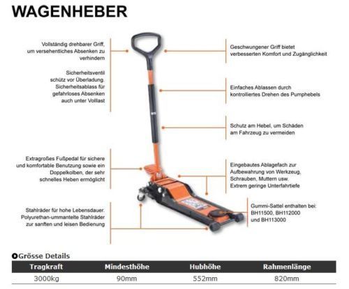BH13000: Bahco Wagenheber Rangierwagenheber BH 13000 3 T mit Doppelkolben