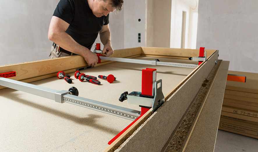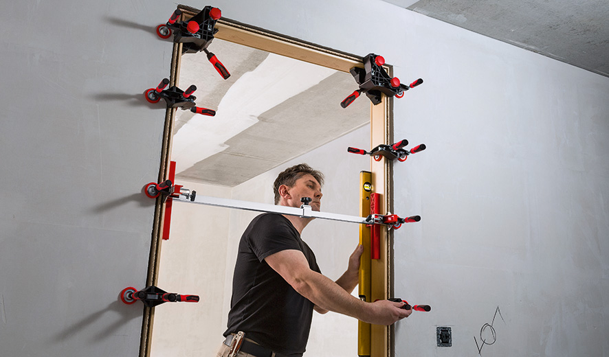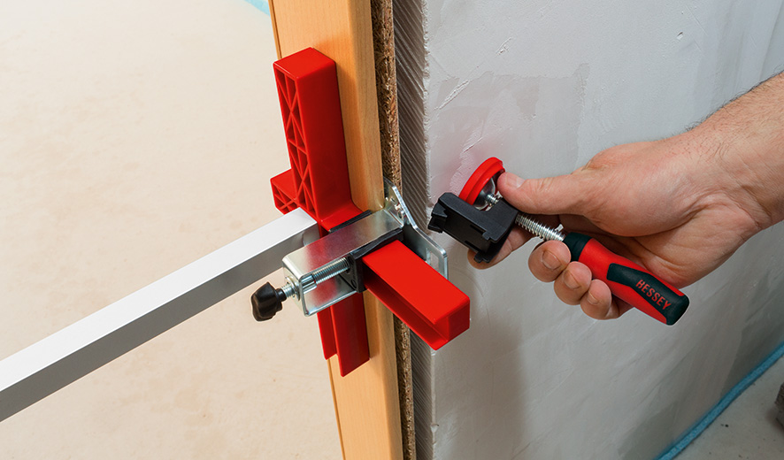 - Fixiert und stützt Türfutter beim Ausschäumen der Mauerfuge schonend und exakt