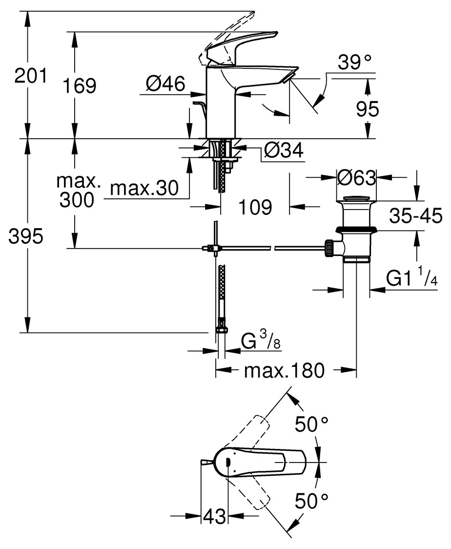 | Vorsprung Ablauf | 169 mm |