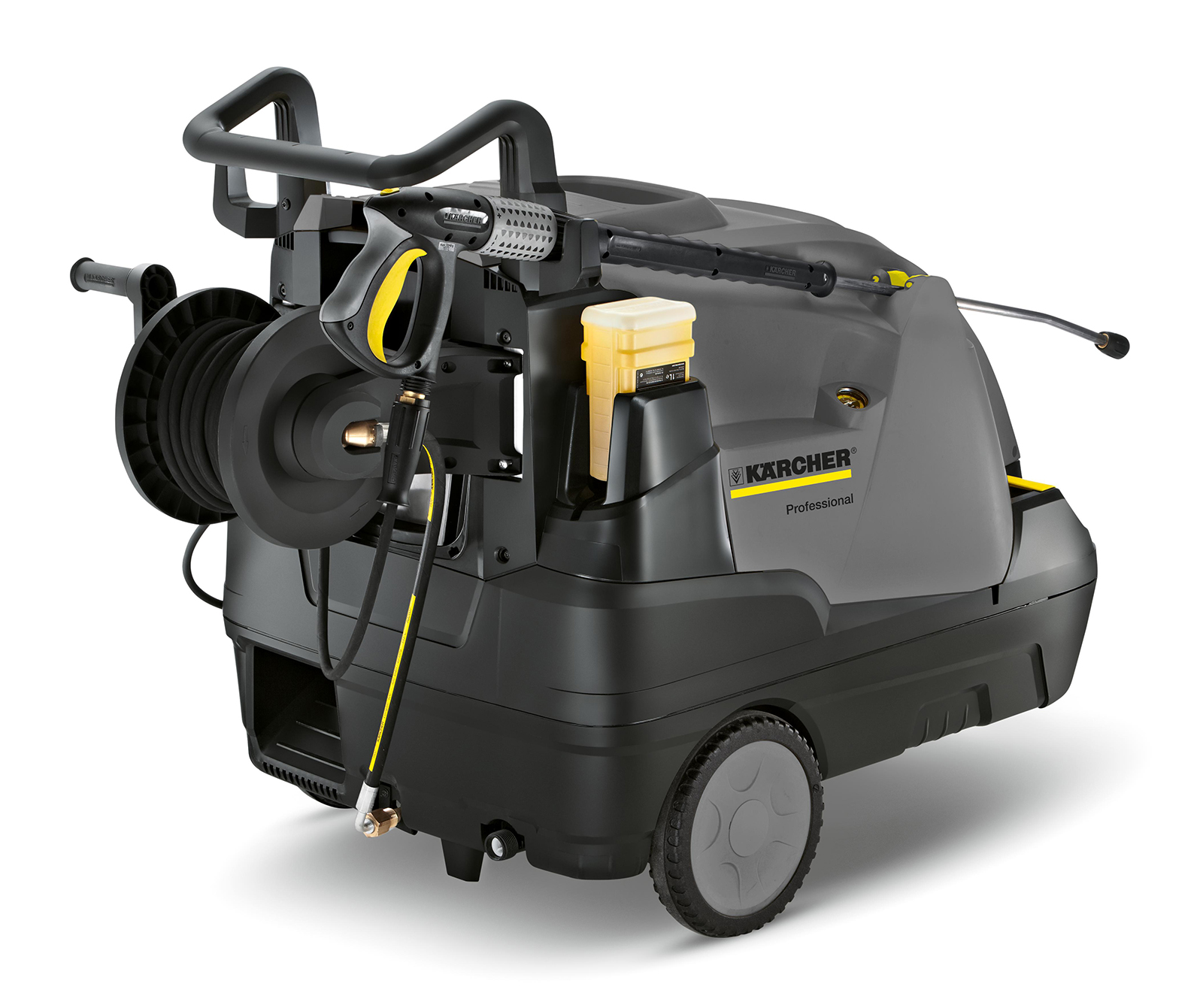 Der 3-phasige HDS 8/18-4 CX ist der leistungsstärkste Heißwasser-Hochdruckreiniger der Kompaktklasse und mit einer eingebauten Schlauchtrommel mit 15-Meter-Hochdruckschlauch ausgestattet.