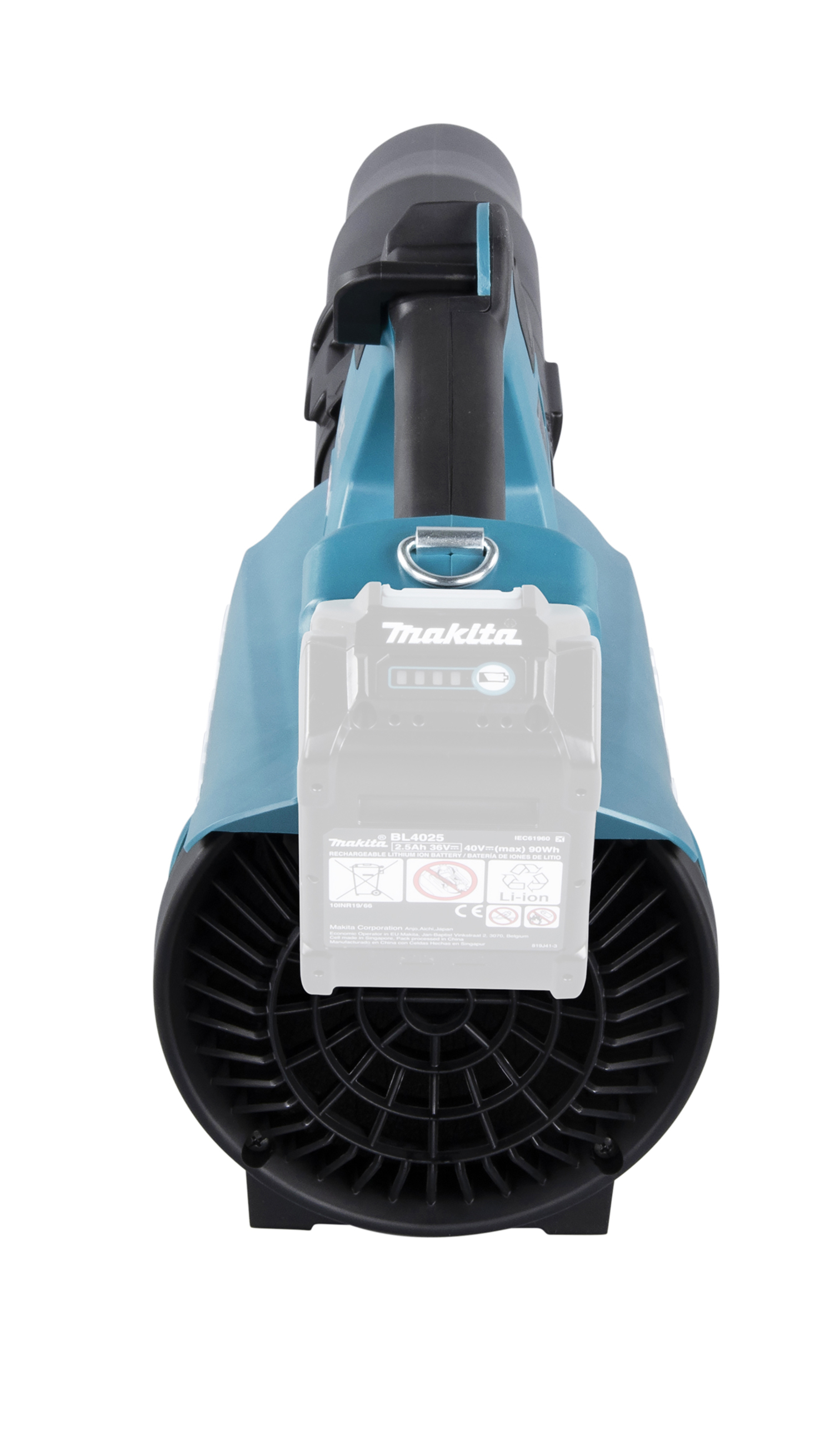 Das Akku-Gebläse UB001G wird von einem 40 V max. Akku angetrieben und kann im Betrieb feinfühlig reguliert und auf Dauerbetrieb eingestellt werden. Trotz des geringen Gewichts erreicht der bürstenlose Motor im Dauerbetrieb eine Luftgeschwindigkeit von 53 m/s. Mit dem Boost-Modus werden sogar bis zu 64 m/s erreicht.