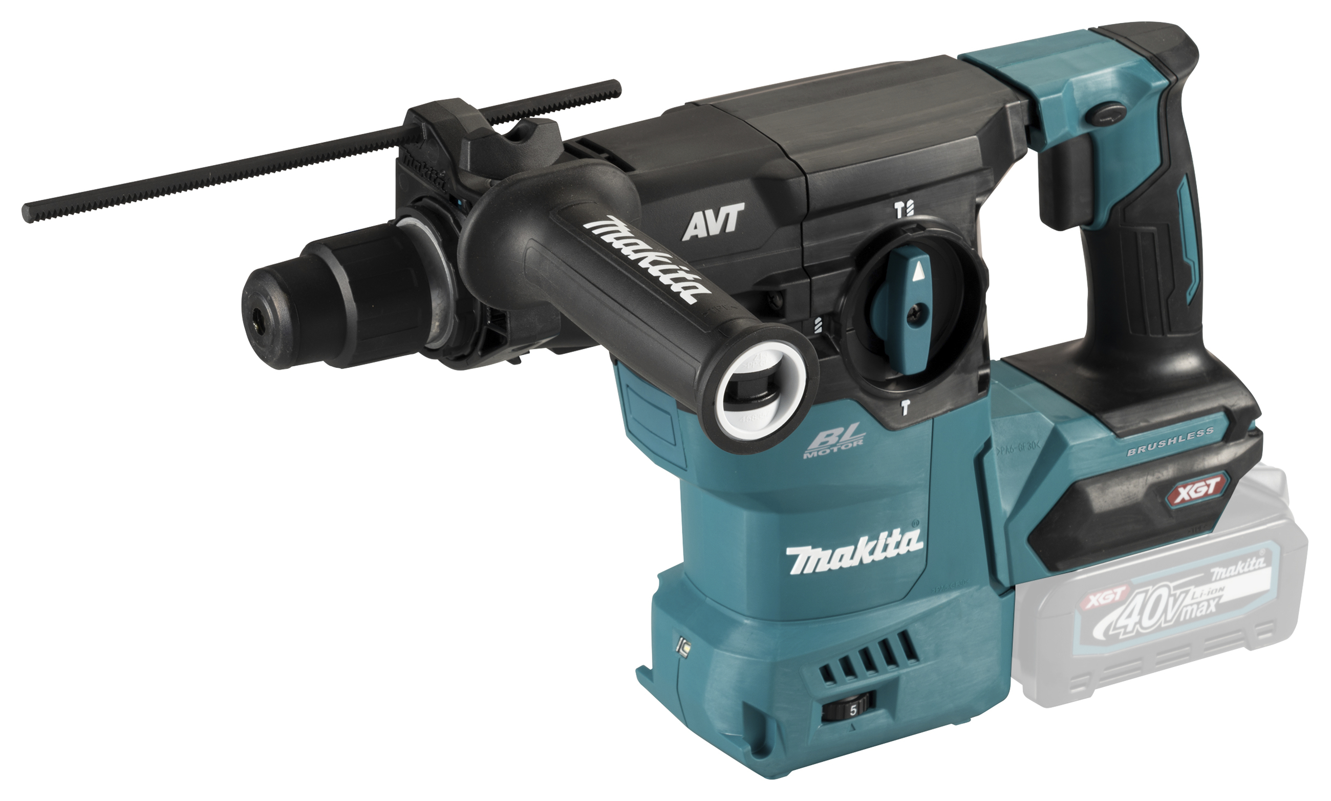 Leistungsstarker 40 V max. Akku-Kombihammer mit SDS-PLUS-Werkzeugaufnahme. Geeignet zum Bohren, Hammerbohren und Meißeln. Die Drehzahl kann über ein Drehrad eingestellt werden. Die Einzelschlagstärke beträgt 3,9 J, die max. Bohrleistung in Holz beträgt 32 mm, in Beton 30 mm. Für staubfreies Arbeiten kann optional die Staubabsaugung DX10 aufgesetzt werden.