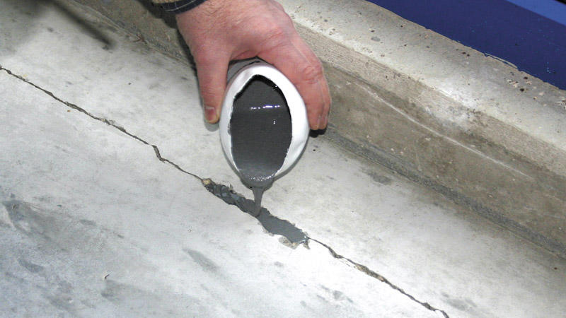 Widerstandsfähiges und selbstnivellierendes Epoxydharz inkl. Estrichklammern zur Armierung der gerissenen Fläche, restflexibel, selbstentlüftend, chemikalienbeständig, lösemittelfrei, mechanisch hoch belastbar, frost- und witterungsbeständig, geruchsarm, wasserfest, für innen und außen