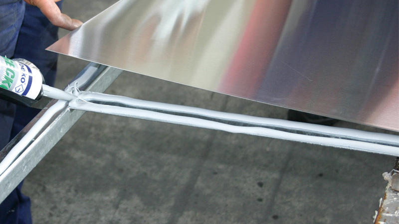 Abdichtungen und spannungsfreie Kombinationsverklebungen im Fahrzeug-, Karosserie- und Containerbau. Anwendungen im lebensmittelnahen Bereich. Vibrationsfestes Anbringen von Schildern und Beschriftungen, Verklebung von Dämmstoffen, Natursteinverklebungen, Spiegelverklebungen, auch sehr gut geeignet zur Montage von Photovoltaikanlagen