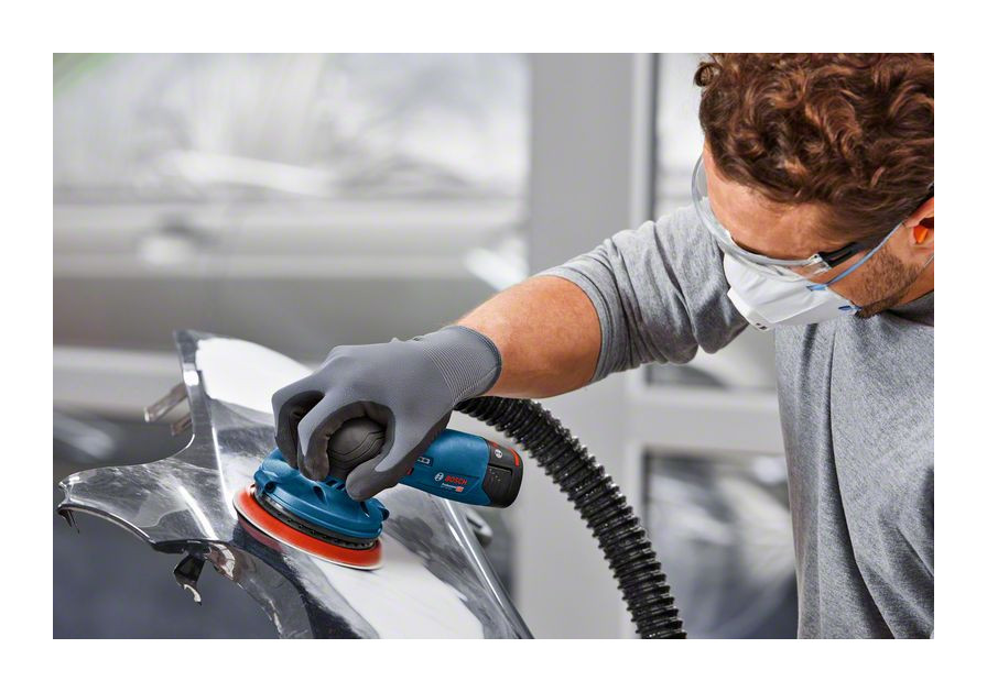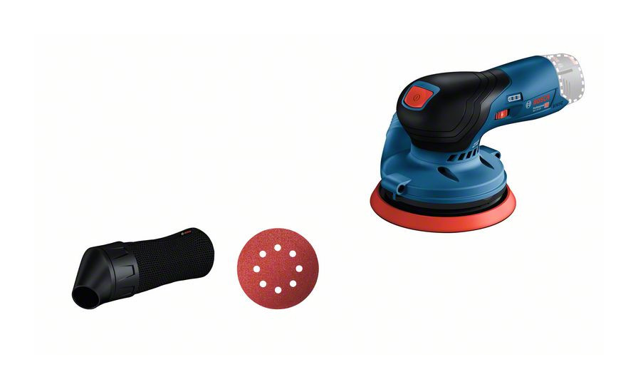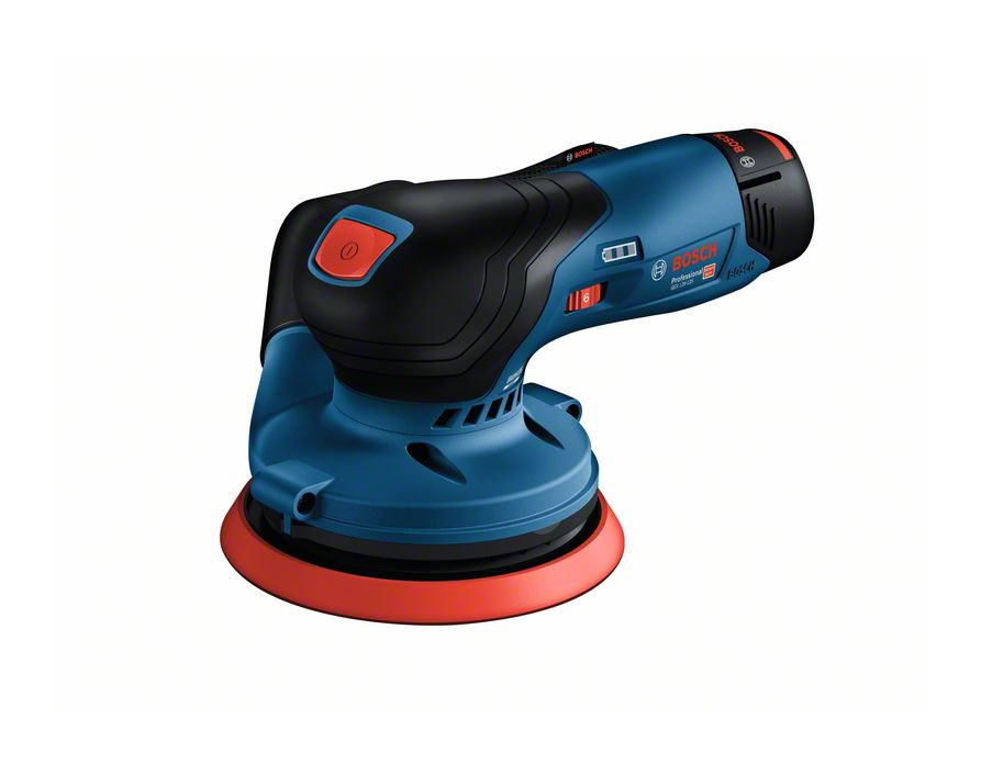Akku-Exzenterschleifer GEX 12V-125. Kompakter Exzenterschleifer für Profis unterwegs. Hervorragende Balance nahe des Werkstücks und ausgezeichnete Ergonomie von Handauflage und Handgriff gewährleisten optimale Werkzeugkontrolle. Schlankes und kompaktes Design für einfaches Schleifen an engen Stellen. Einfache Bedienung dank intuitivem Bedienungskonzept. Im Lieferumfang enthalten: Schleifteller (125 mm) (2 608 000 714), 1 x Schleifblatt C430, Expert for Wood+ aint, 120 (separat erhältlich als 5er-Pack: 2 608 605 643), Staubbeutel (2 608 000 715)