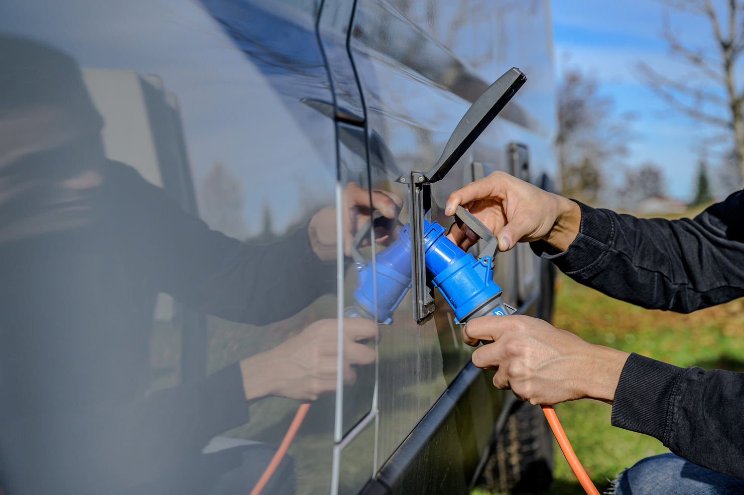 CEE 230V Camping-Verlängerungskabel 25m (mit H07RN-F 3G2,5 Kabel in der Signalfarbe orange, Camping-Stromkabel für den ständigen Einsatz im Außenbereich, Made in Germany)