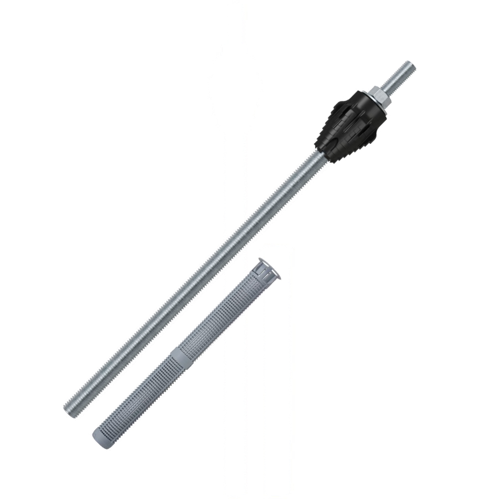 - Der glasfaserverstärkte Kunststoffkonus fräst sich formschlüssig in das WDVS und ermöglicht dadurch eine einfache, schnelle und justierbare Montage ohne Sonderwerkzeuge.