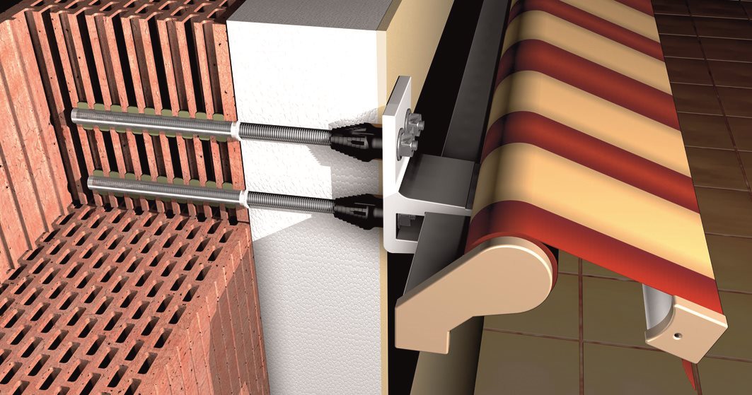 Das fischer Abstandsmontagesystem Thermax ist eine Lösung zur Befestigung in der Außenwand ohne Wärmebrücken im WDVS. Das System besteht aus einer speziellen Ankerstange aus galvanisch verzinktem Stahl mit einem glasfaserverstärkten Konus, Gewindestiften und Ankerhülsen für die Befestigung in Lochstein. In Kombination mit den fischer Hochleistungsmörteln FIS EM, FIS V, FIS SB und FIS GREEN ist das System für zahlreiche Baustoffe zugelassen. Die Ankerstange mit dem glasfaserverstärkten Konus fräst sich selbstschneidend durch den Putz in den Dämmstoff. Die Ankerstange wird in der Ankerhülse mit einem Injektionsmörtel im Baustoff verankert. Der Konus am Kopf der Ankerstange unterbricht die Wärmebrücke und nimmt den Gewindestift aus nicht rostendem Stahl für die äußere Befestigung auf. Der Thermax befestigt schwere Lasten wie Markisen, Klimageräte und Satellitenanlagen in Beton, Porenbeton und Mauerwerk aus Loch- und Vollstein.