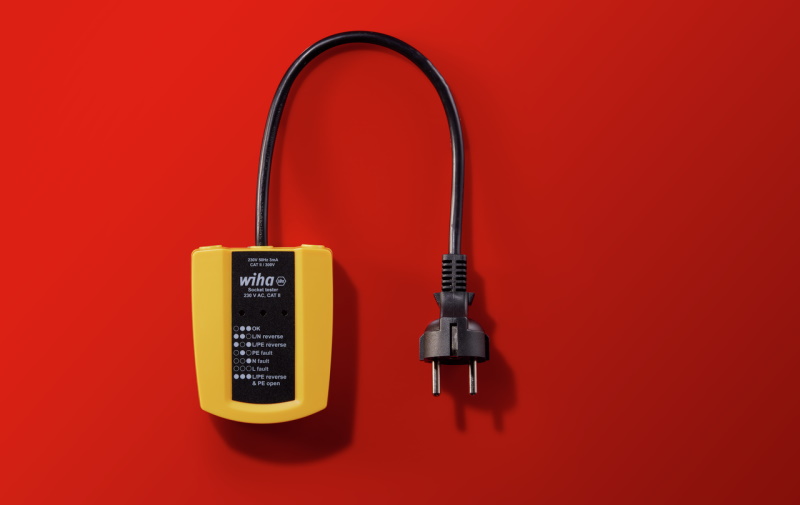 der Steckdosentester von Wiha maximale Sicherheit bei Arbeiten an Stromkreisen.