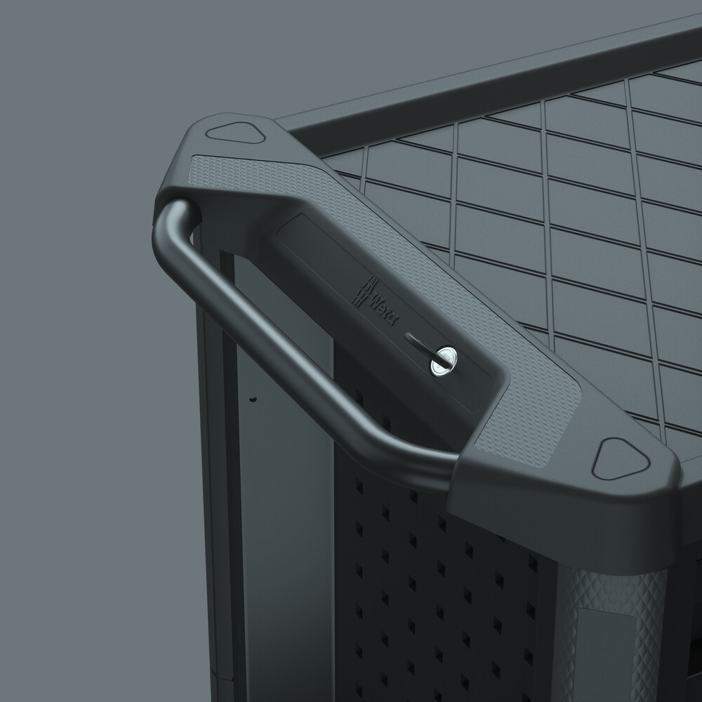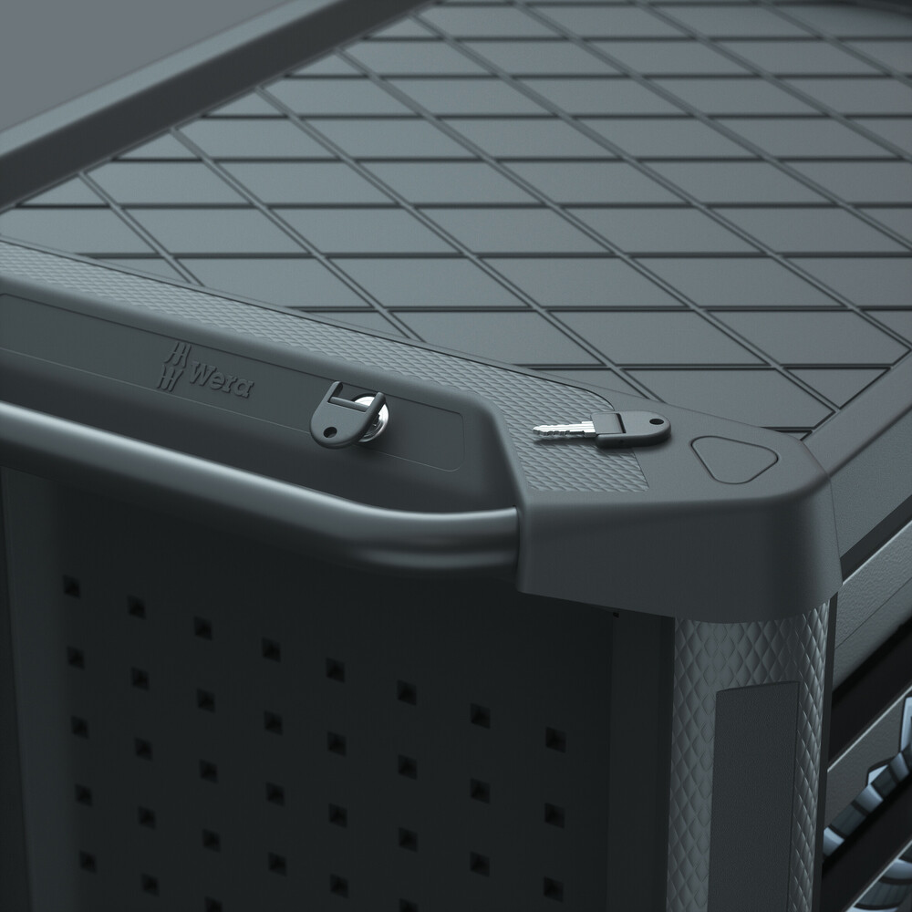 Das Schloss an der Seite ist ergonomisch platziert, und die extrem robuste Schließanlage schützt Ihre Werkzeuge vor unbefugtem Zugriff.