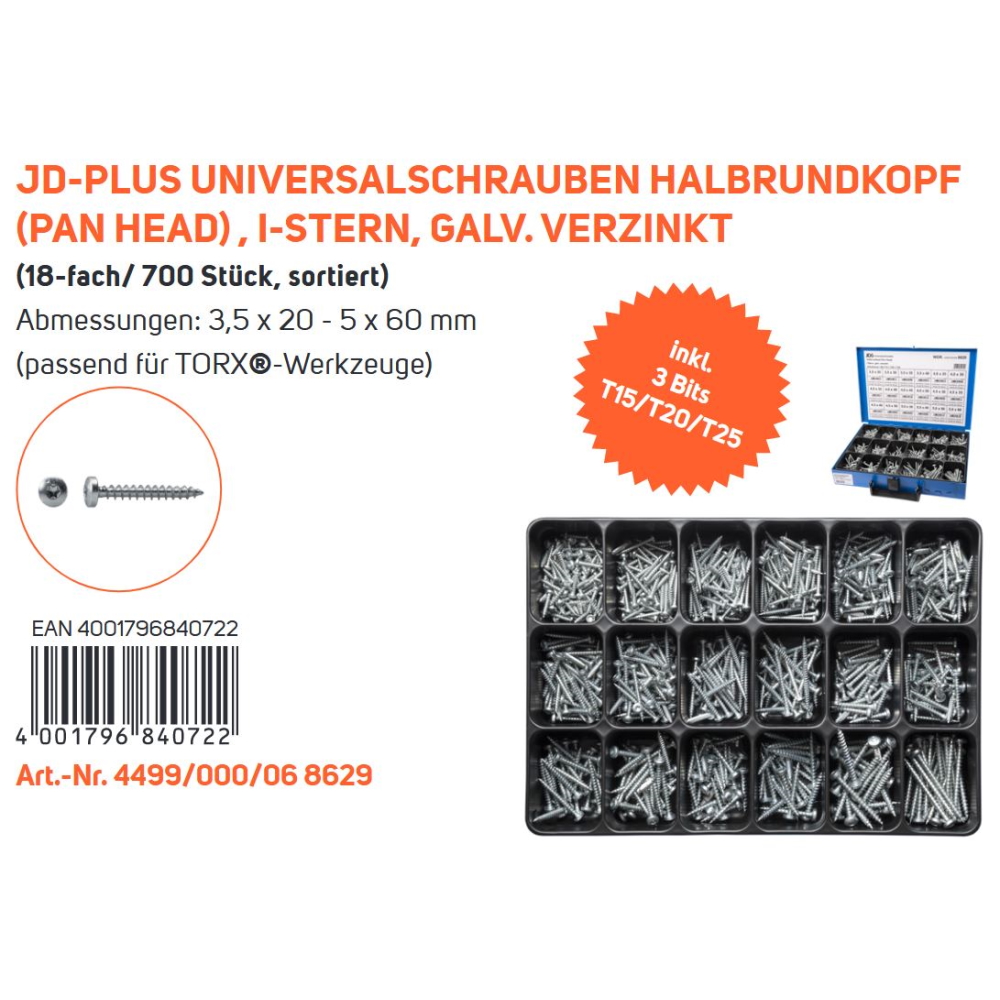 JD PLUS Universalschrauben, Halbrundkopf, Pan Head, I-Stern Torx, galvanisch verzinkt