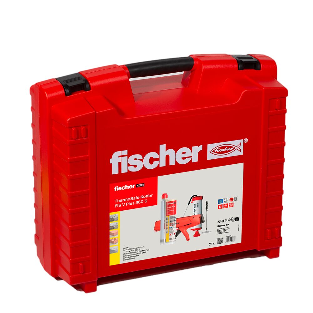Sichern Sie sich jetzt den ThermoSafe Koffer mit 6 Kartuschen Hochleistungsmörtel FIS V Plus 360 S einer Auspresspistole FIS DMS, einem Ausbläser groß AB G und einer Reinigungsbürste BS Ø 12. Der fischer Hochleistungsmörtel FIS V Plus 360 S ist der universelle Alleskönner für höchste Anforderungen. Der styrolfreie Vinylester-Hybridmörtel ist das weltweit erste System, das für Befestigungen in Lochstein, Vollstein, Beton und Porenbeton zugelassen ist. Das Injektionsmörtel-System punktet zudem mit zugelassenen Systemkomponenten wie Ankerstangen, Innengewindeankern und Injektions-Ankerhülsen für Befestigungen in Beton, Porenbeton und Mauerwerk im Innen- und Außenbereich. Der fischer Hochleistungsmörtel FIS V Plus 360 S wird aber auch mit den zugelassenen Systemkomponenten für Bewehrungsanschlüsse, den fischer Verblendsanierankern VBS 8 und den fischer Wetterschalenankern FWS sowie dem Abstandsmontagesystem TherMax verwendet.