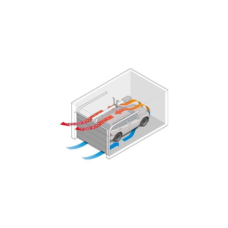 - ermöglicht eine sensorgesteuerte Lüftungsfunktion, zur Reduzierung von Schimmelbildung in der Garage