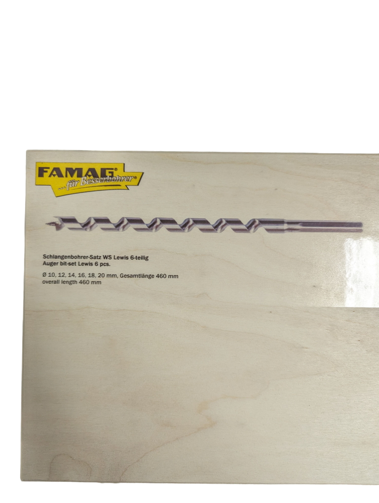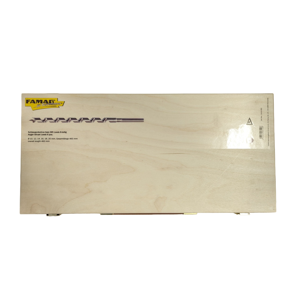 6-teiliger Schlangenbohrer-Satz von FAMAG LEWIS-BOHRERSATZ mit 460mm Länge in einem hochwertigen Holzkoffer in gewohnter FAMAG Qualität