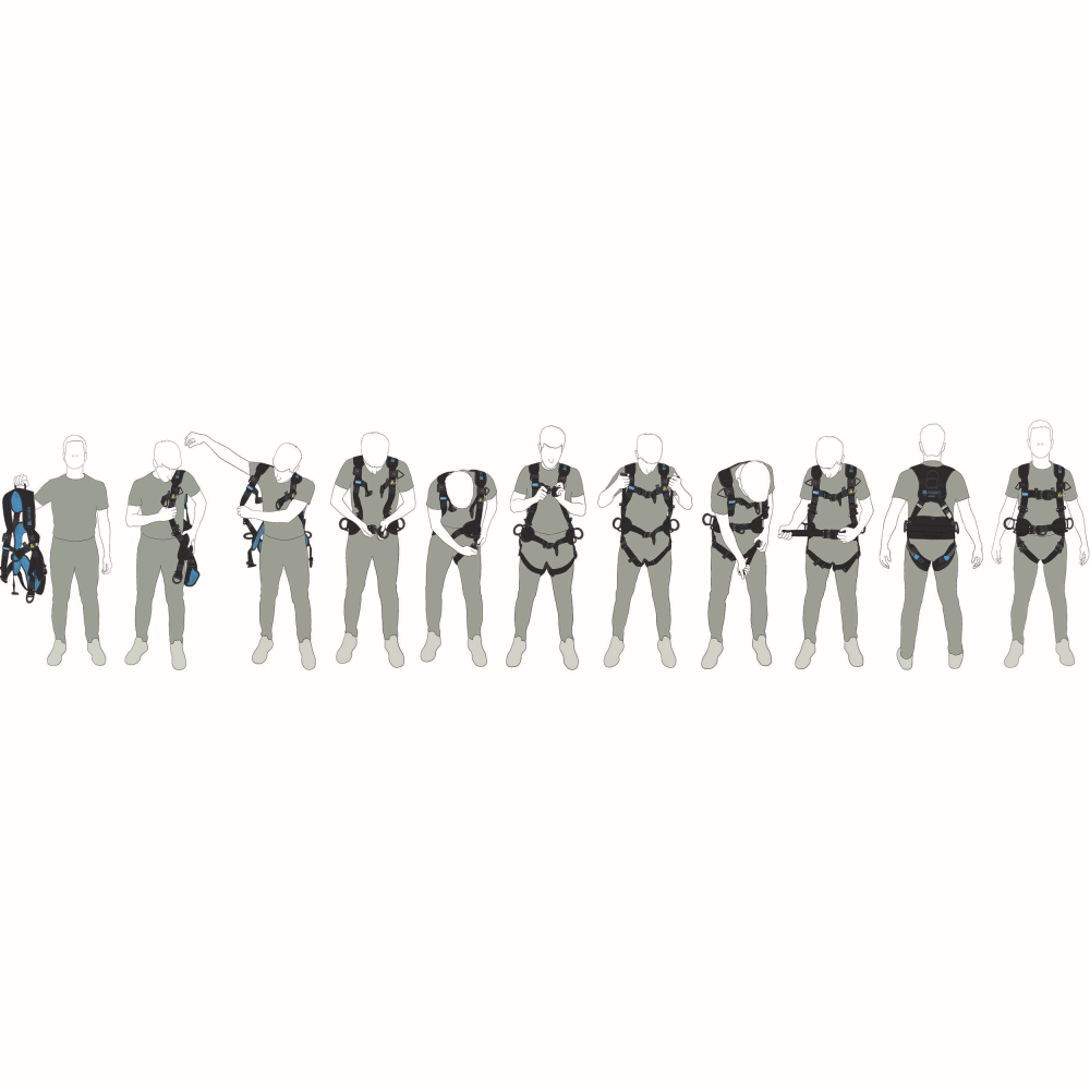 - Chair In The Air - die einzigartige Lösung gegen Hängetrauma. Direkt in Gurt integriert, in nur 5 Sekunden kann auch ungeübte Person eine sichere Position nach einem Sturz einnehmen.